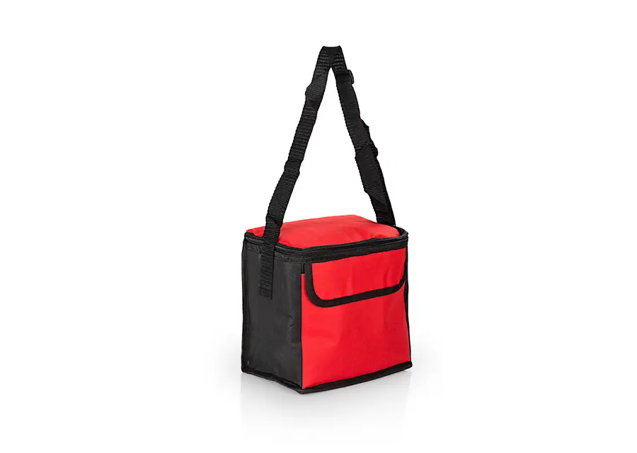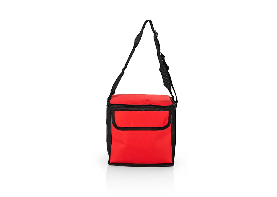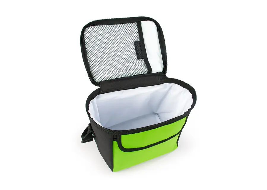 Nevera térmica con recubrimiento interior especial que conserva las bebidas o alimentos fríos por más tiempo, bolsillo principal con cierre de cremallera y malla interior en la tapa, bolsillo frontal tipo sobre con cierre de velcro.