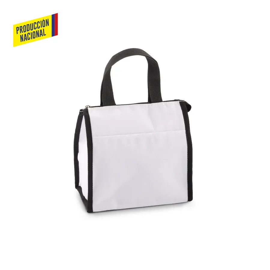 Nevera en poliéster con cierre en cremallera. Un bolsillo externo sin cierre.