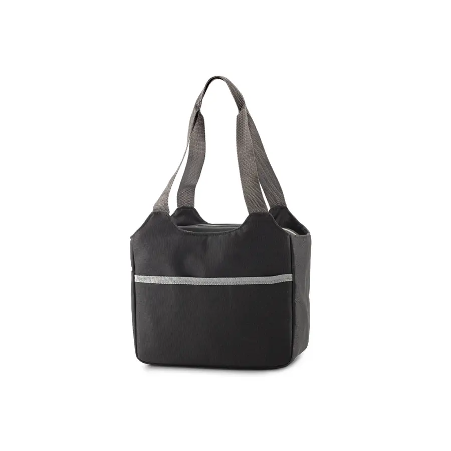 Nevera en poliéster, con cierre en cremallera. Un bolsillo externo sin cierre.