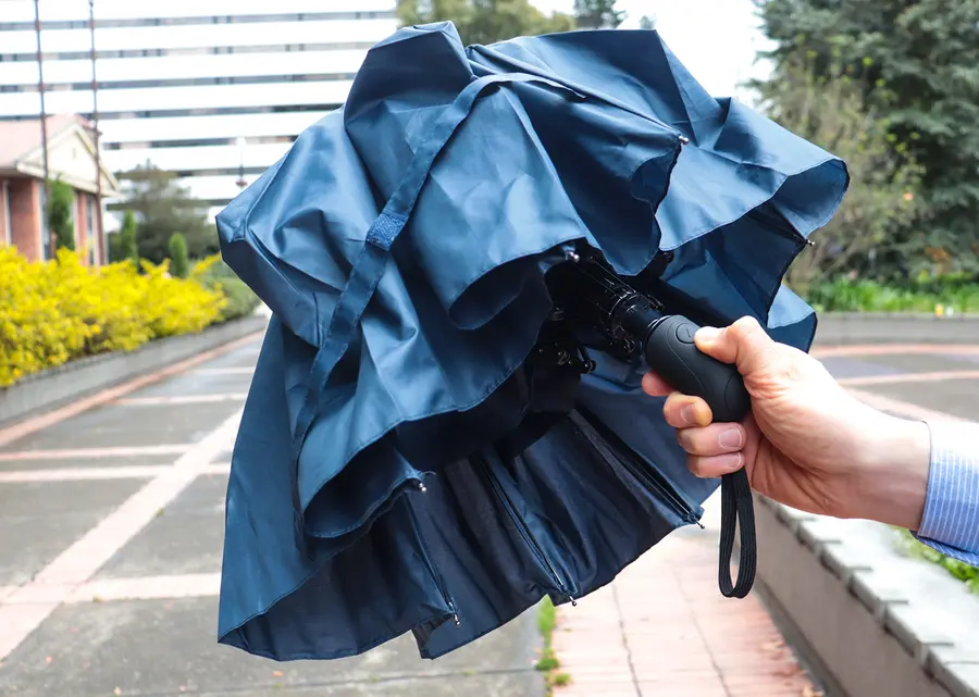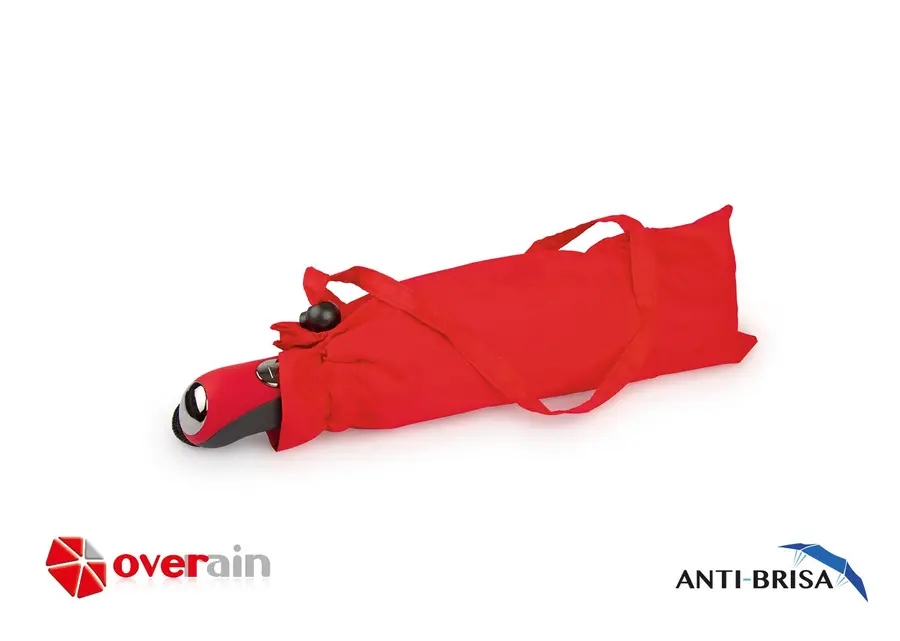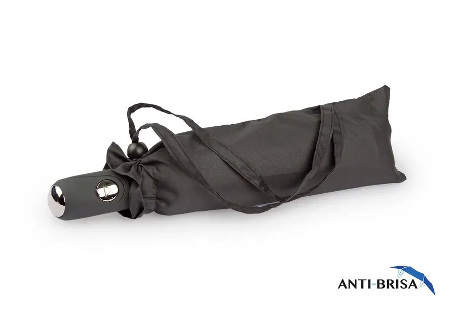 Paraguas 3 secciones de apertura automática y cierre manual. Antibrisa. Funda en la misma tela del paraguas con cordón ajustable.