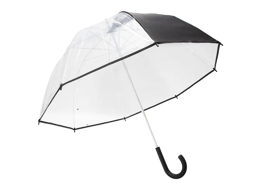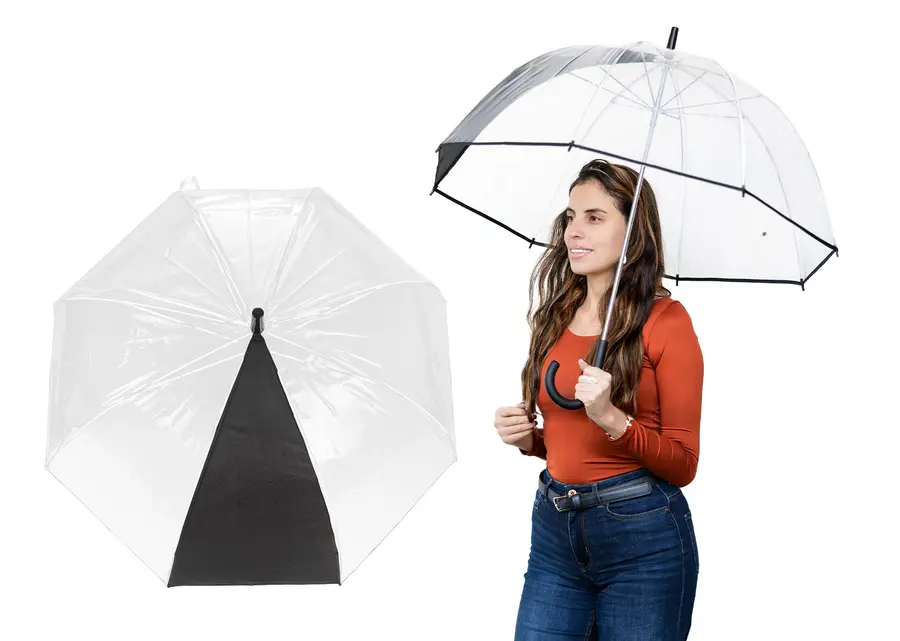 Paraguas de 23″ con 8 cascos, diseño tipo Apolo de cúpula amplia que ofrece mayor cobertura. Apertura manual completa, estructura reforzada con marco de metal Zicify y varillas largas de fibra de vidrio para mayor resistencia al viento. Eje de metal cromado que aporta durabilidad y estilo. Cubierta en POE 10C transparente con un panel de tela pongee en color sólido, creando un contraste elegante. Mango de plástico con acabado de goma, ergonómico y en color a juego con la tela pongee, ideal para un agarre cómodo y seguro.