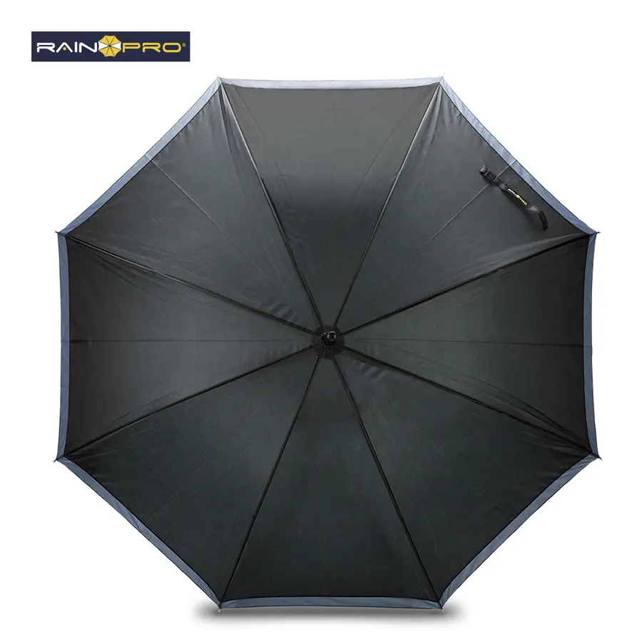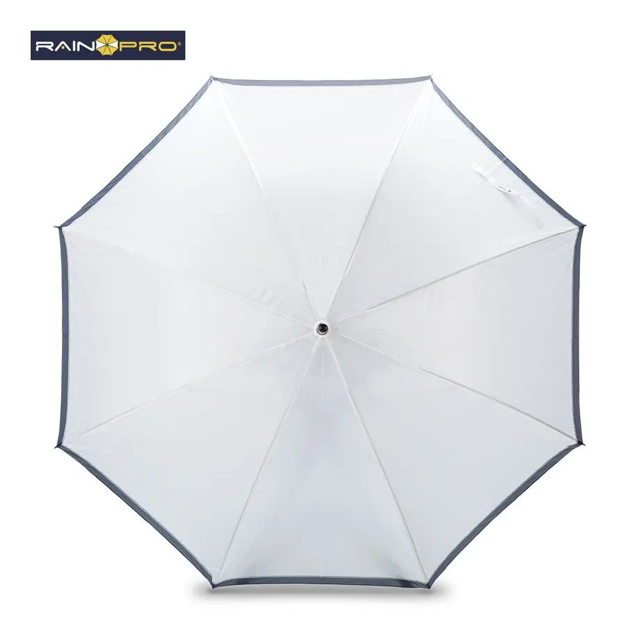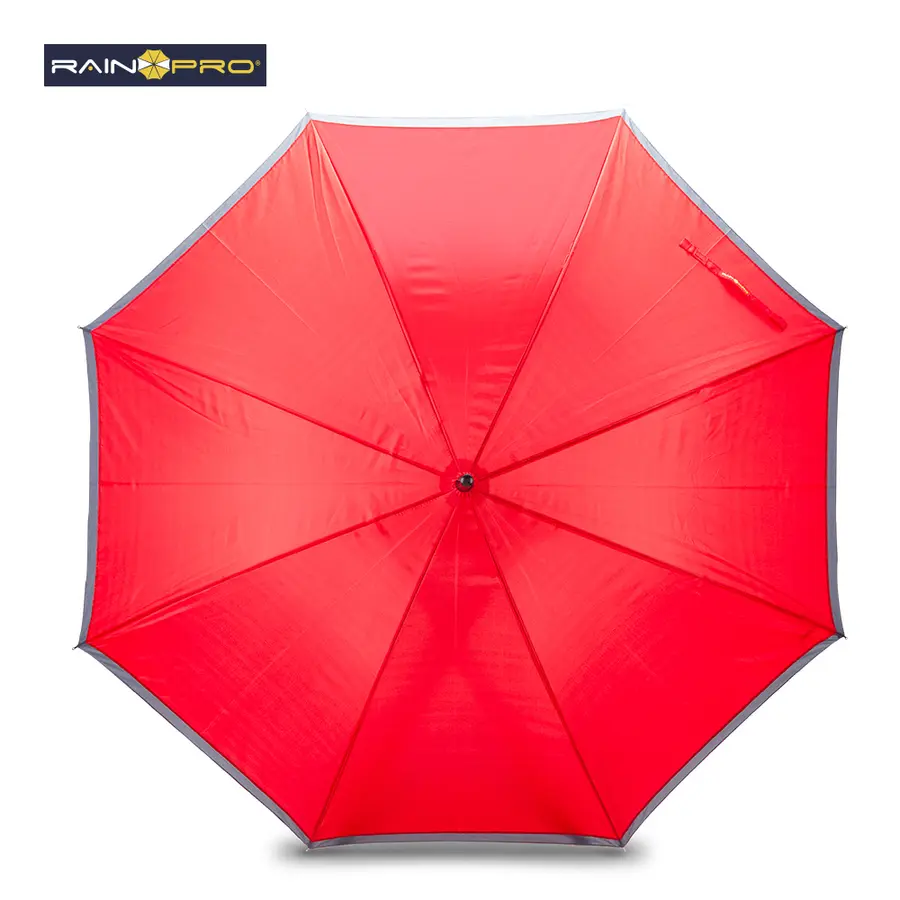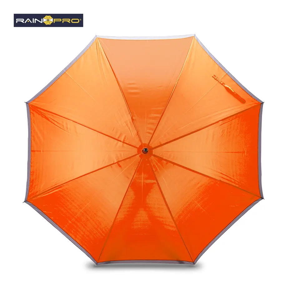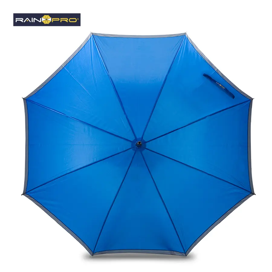 Poliéster 190T, con mango en espuma EVA y funda para cargar. Apertura automática y cierre manual. Herraje metálico.