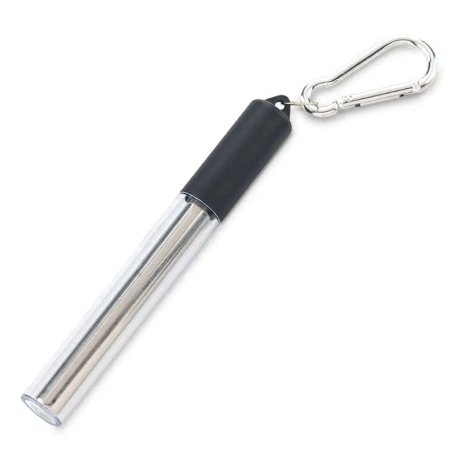 Pitillo reutilizable y extensible en acero inoxidable con boquilla de silicona.