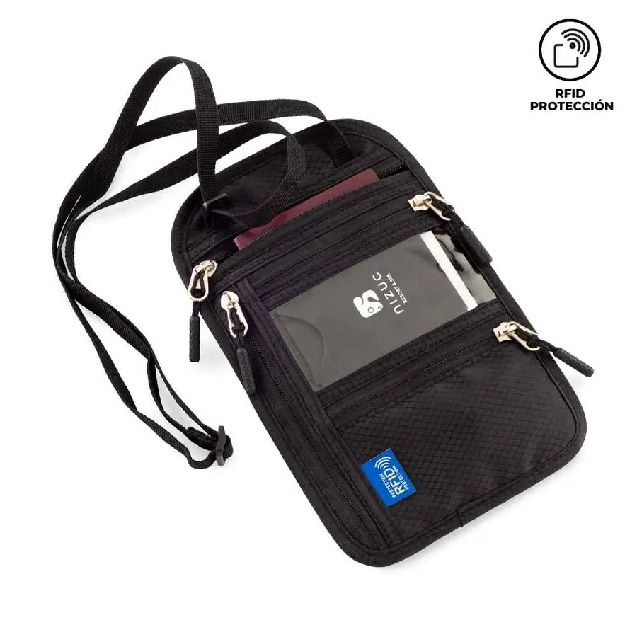 Portadocumentos para viaje en lona poliester, con