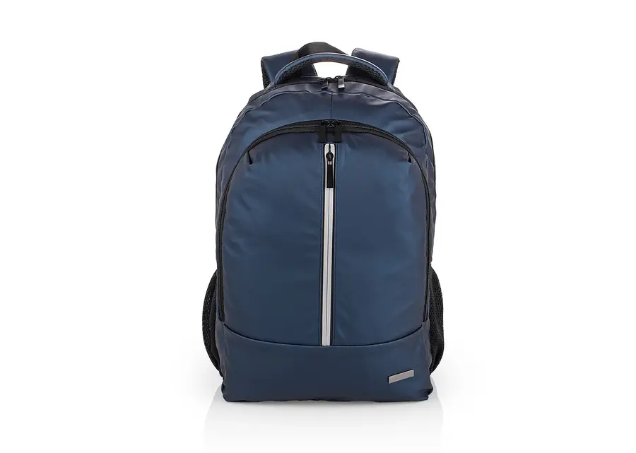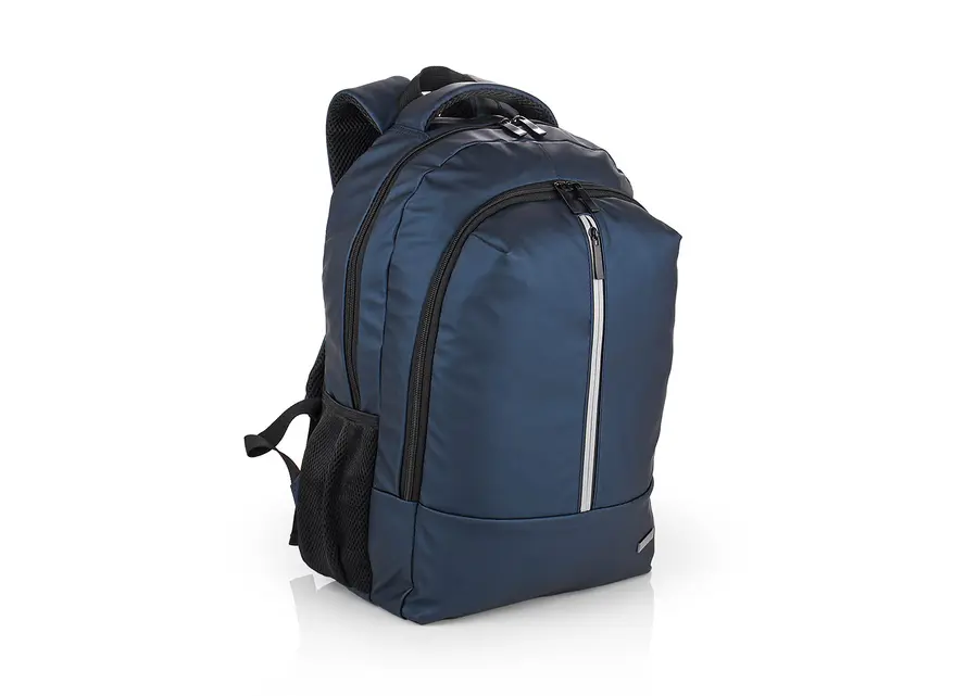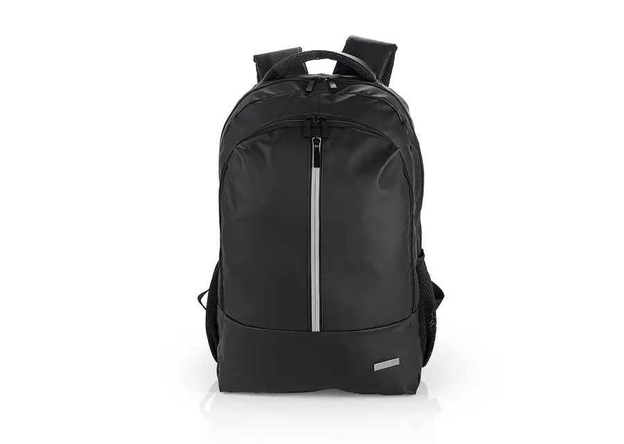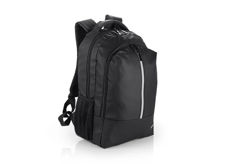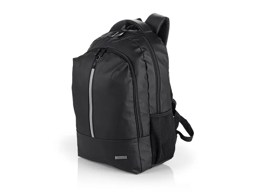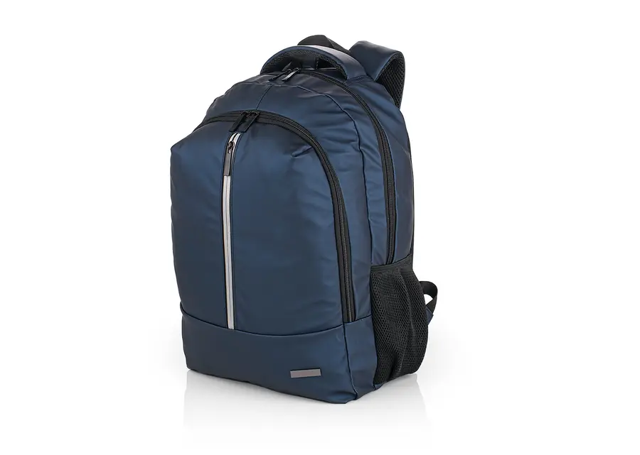 Morral portalaptop con espaldr ergonómico, bolsillo frontal, medio y principal con cremallera, el bolsillo principal tiene un compartimiento para dispositivos portatiles de 15″, 2 bolsillos laterales en malla, incluye una placa metalica para marca en láser