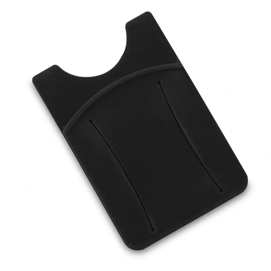 Portatarjetas adhesivo para móviles con organizador de cables.