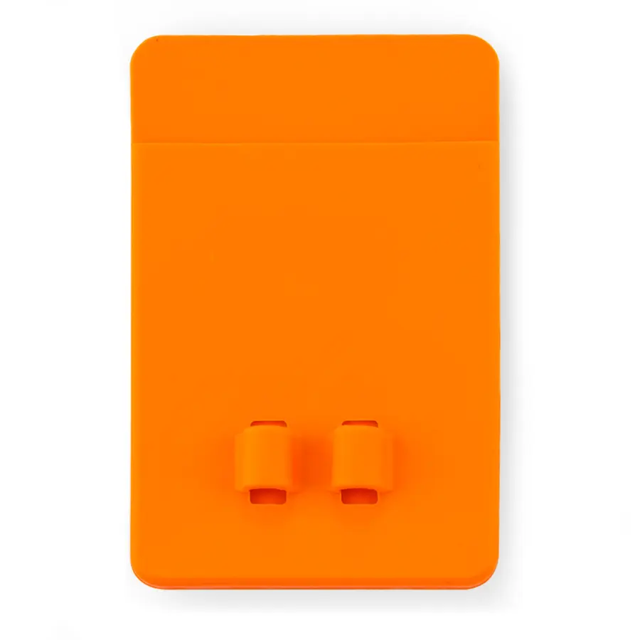 Portatarjetas adhesivo para móviles, con orificios para colocar audífonos.