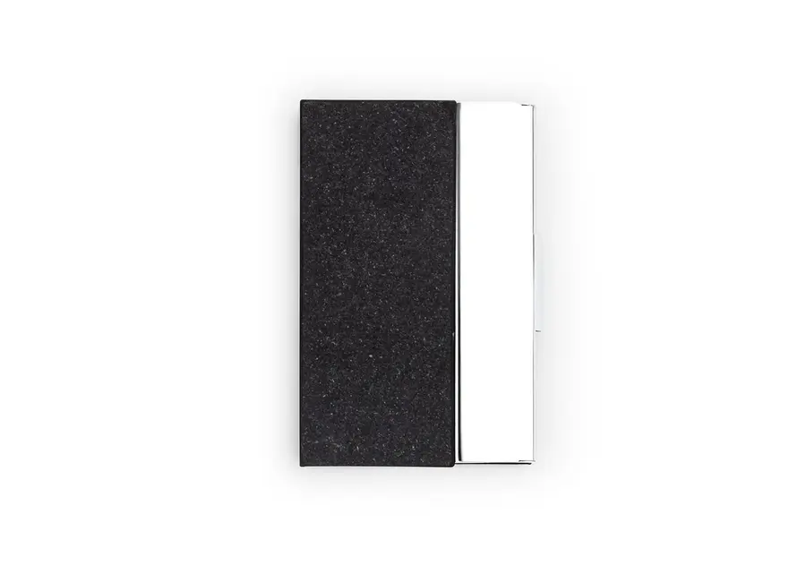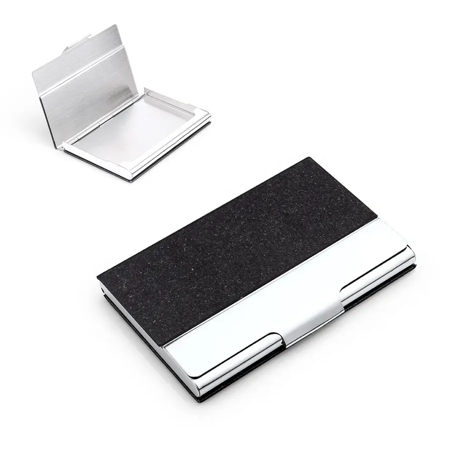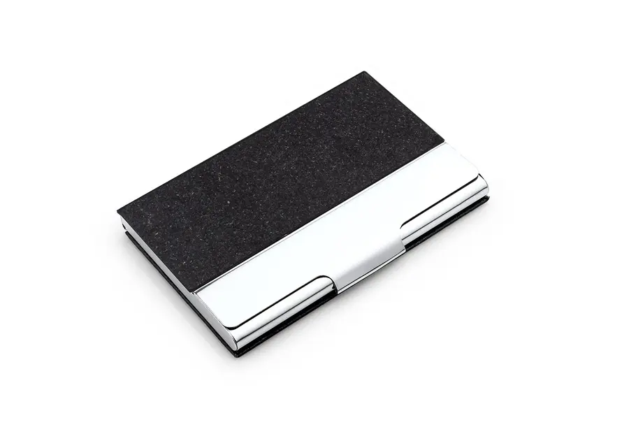 Portatarjeta Metálico con cubierta en cuero reciclado, cierre a presión.