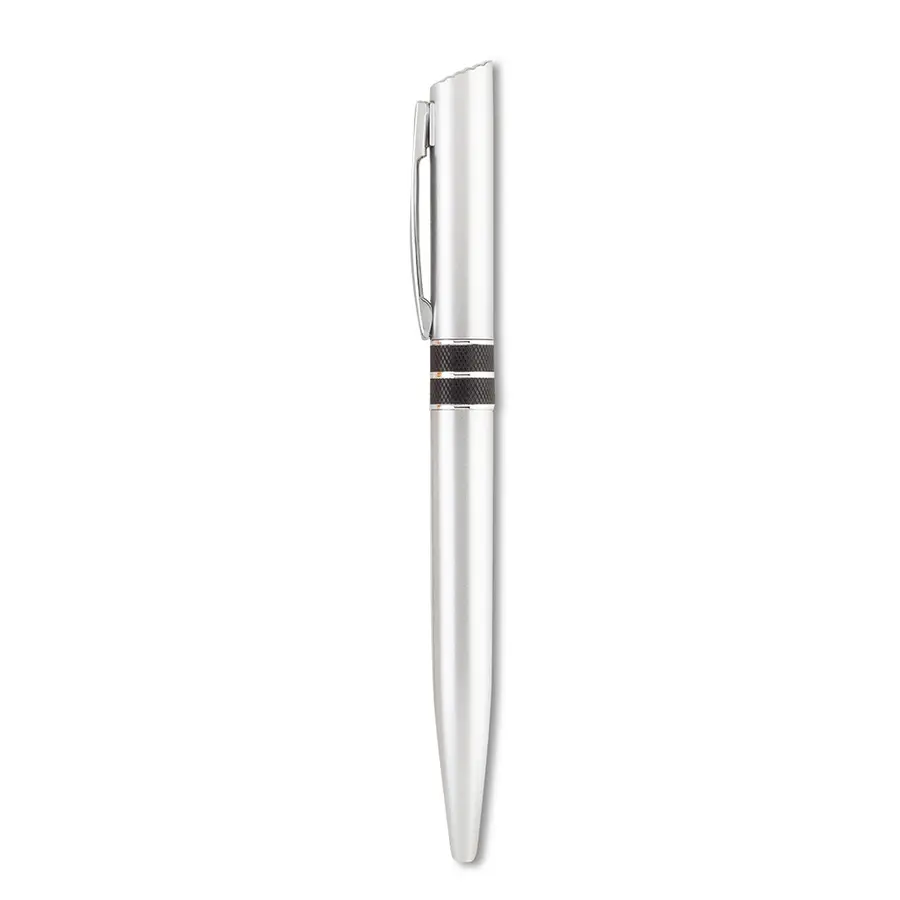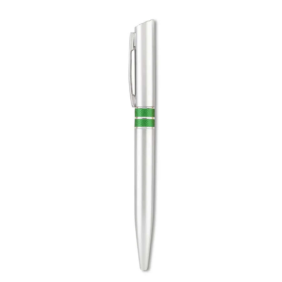 Bolígrafo plástico. Clip metálico.