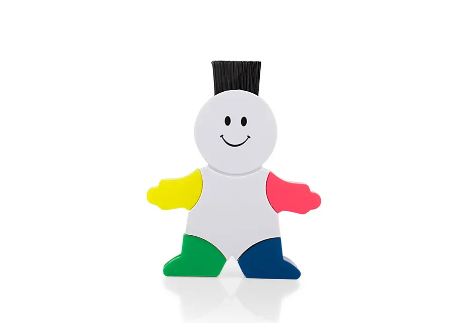 Juego de 4 resaltadores de colores con base en forma de niño y cepillo para limpiar el teclado.