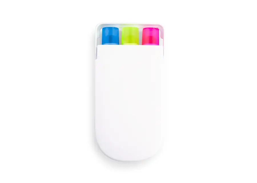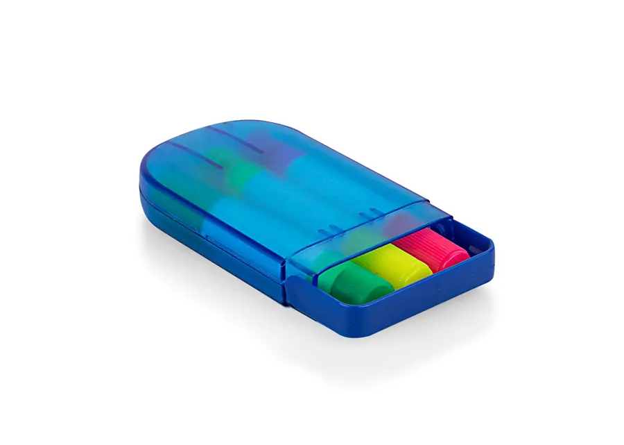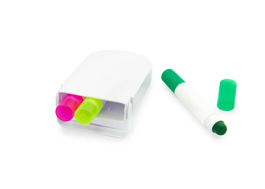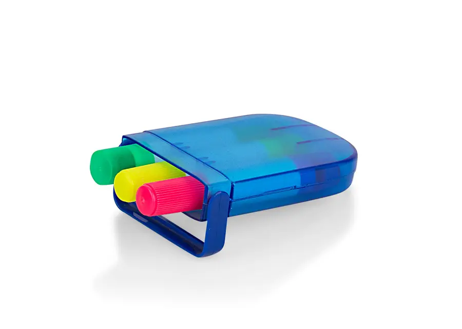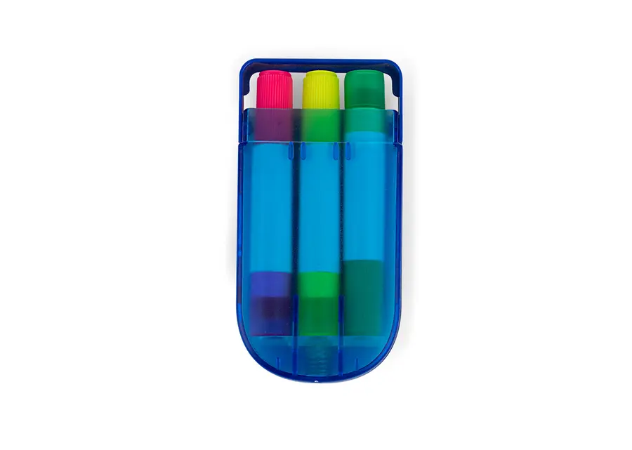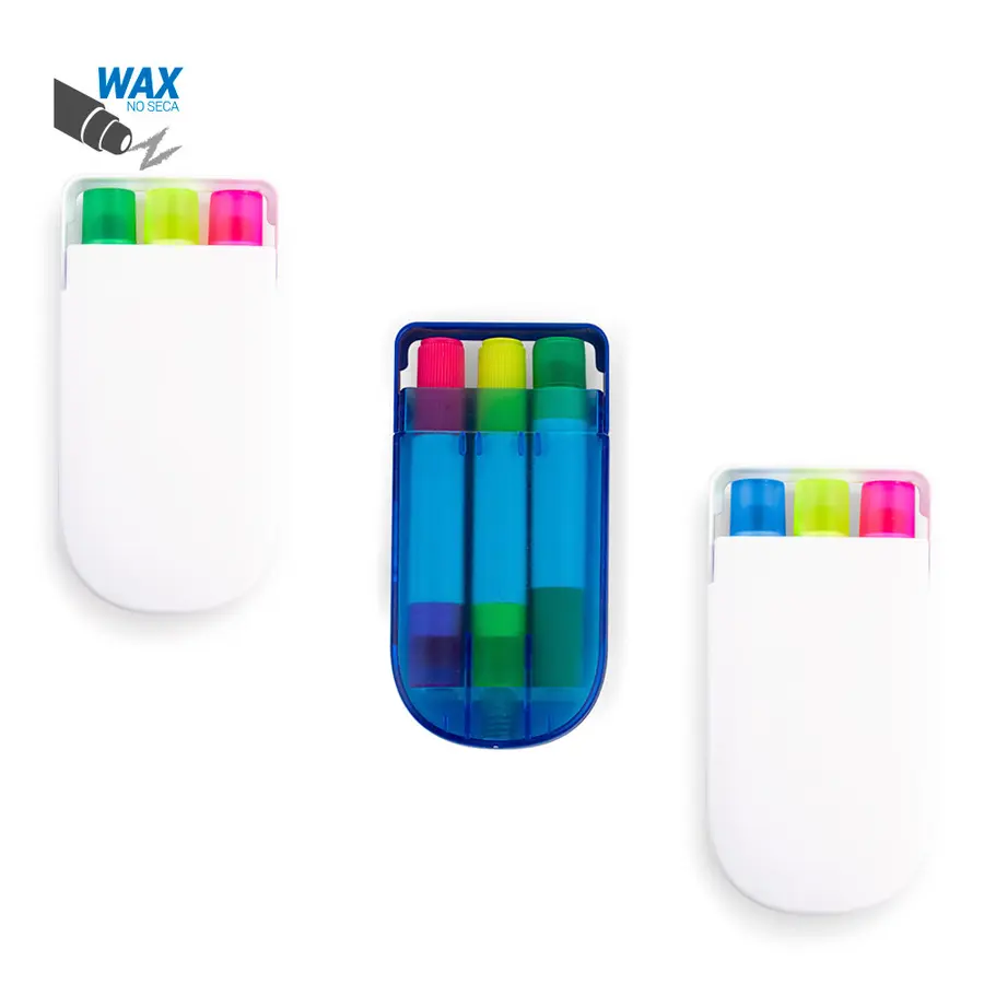 Set en estuche plástico de resaltadores en parafina x 3 unidades, no se secan.