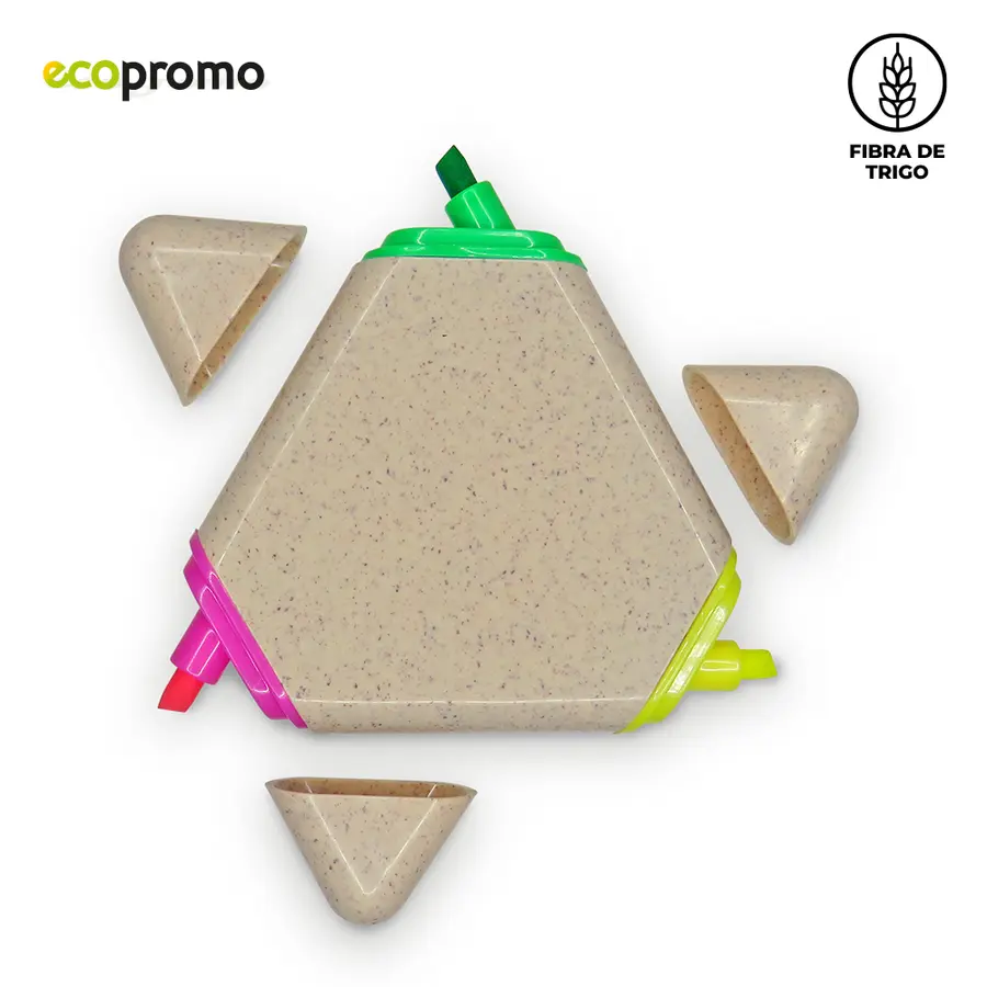 Set de 3 resaltadores en tinta con material ecológico en fibra de trigo.