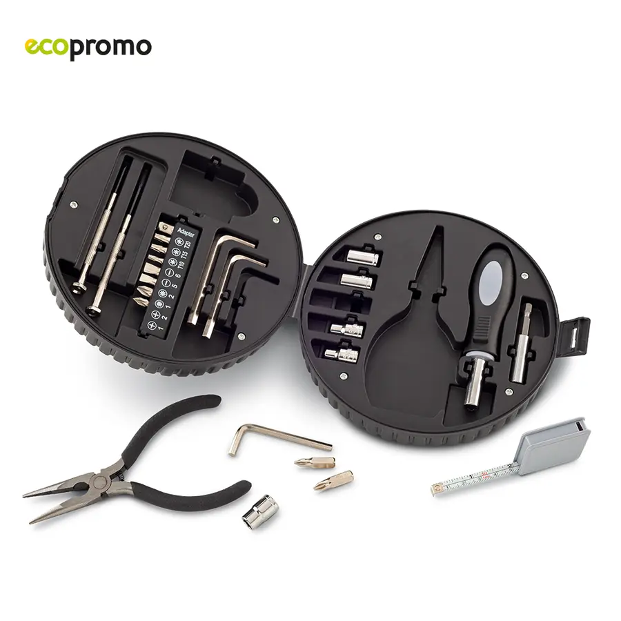 Set de herramientas de 24 piezas en estuche plástico y bambú.