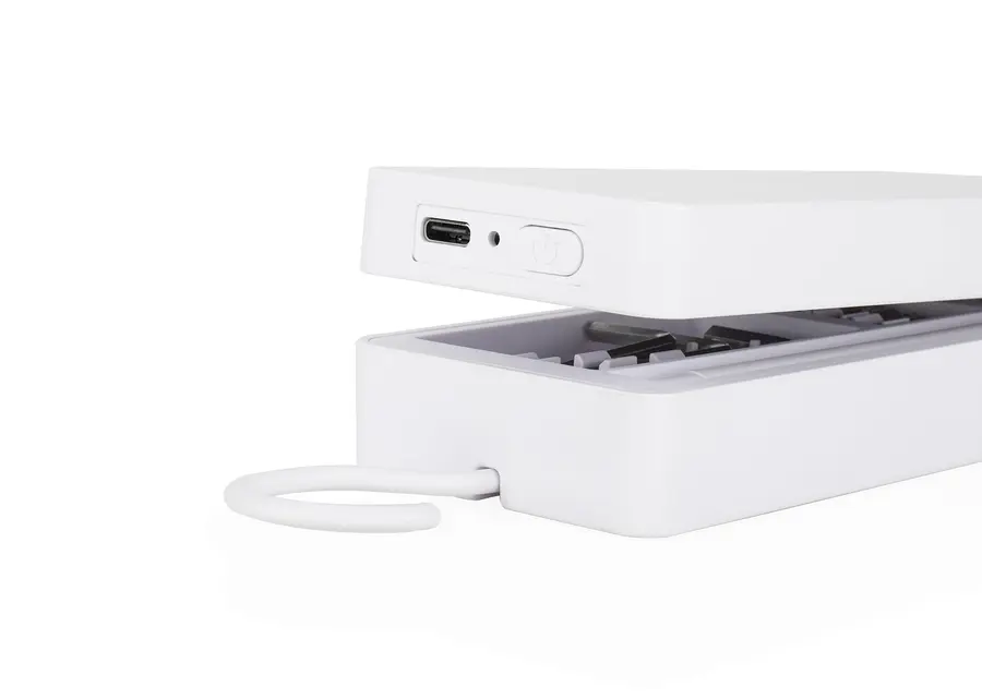 La linterna multifuncional cuenta con botón de encendido que permite ajustar la intensidad de la luz en tres niveles, apagándose al cuarto clic. Su cabezal giratorio permite orientar la luz según la necesidad, brindando mayor versatilidad en espacios de trabajo. Incorpora entrada tipo C para recarga, base magnética para sujetar piezas metálicas y gancho para colgar (3,2 X 4,5). Además, incluye 8 puntas de destornillador, sujetador de pieza (12,5 X Ø 0,7) y 3 llaves hexagonales, lo que la convierte en una solución práctica y completa para espacios de trabajo. Está fabricada en ABS, PP y hierro inoxidable.