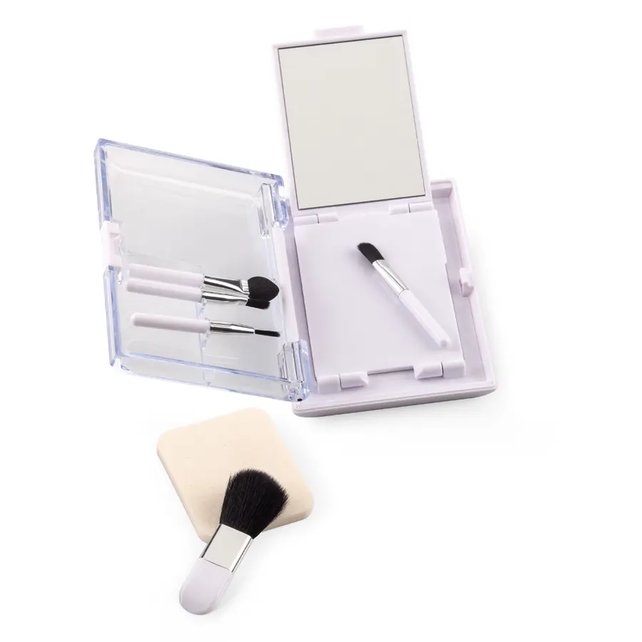 Estuche plástico con tres espejos, set de 5 brochas