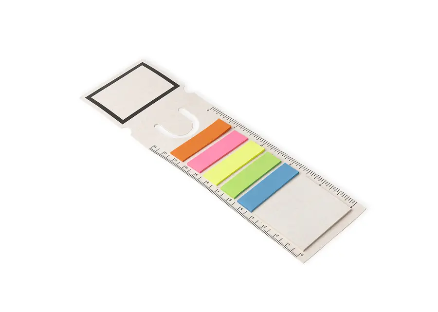 Set de memos ideal para utilizarse como separador de libros. Está elaborado en material recuperado de cajas Tetra pak. Incluye 5 juegos de banderas adhesivas en papel de colores de 15 hojas cada uno.