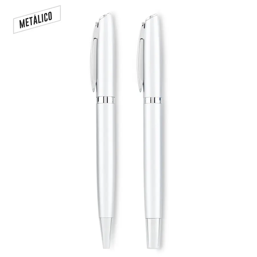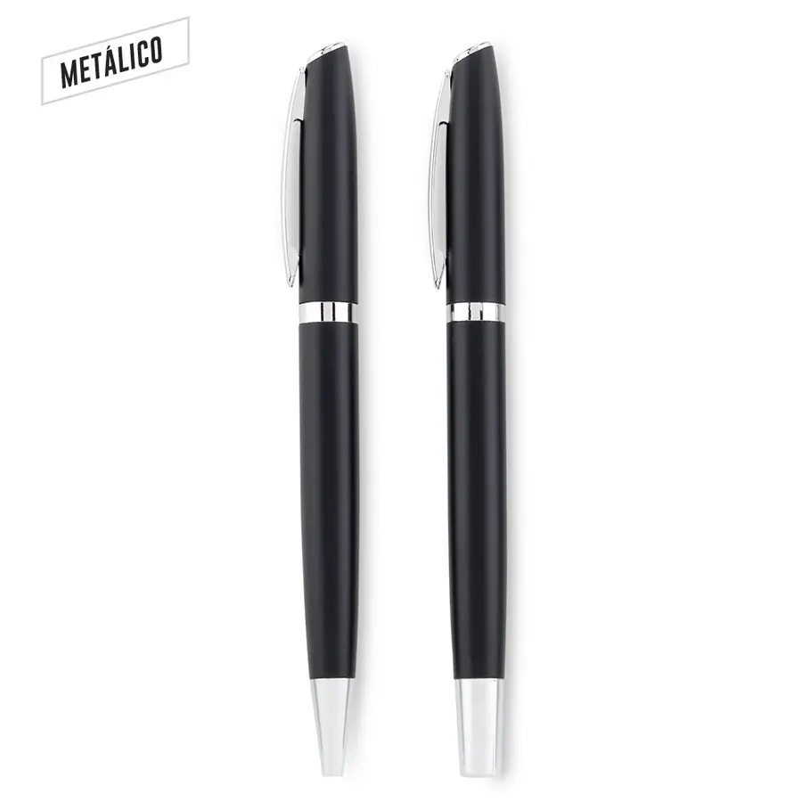 Set de bolígrafo y roller metálico en caja de cartón. Empaque Caja Individual.