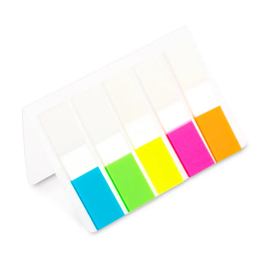 Set argollado de banderitas adhesivas y taco de papel amarillo con tapas plásticas. De 8.5 x 8 cm.