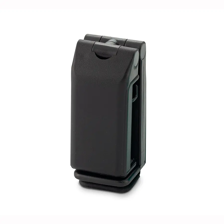 Soporte en plástico para móviles, plegable y escualizable, rotación 360°. Empaque caja individual.