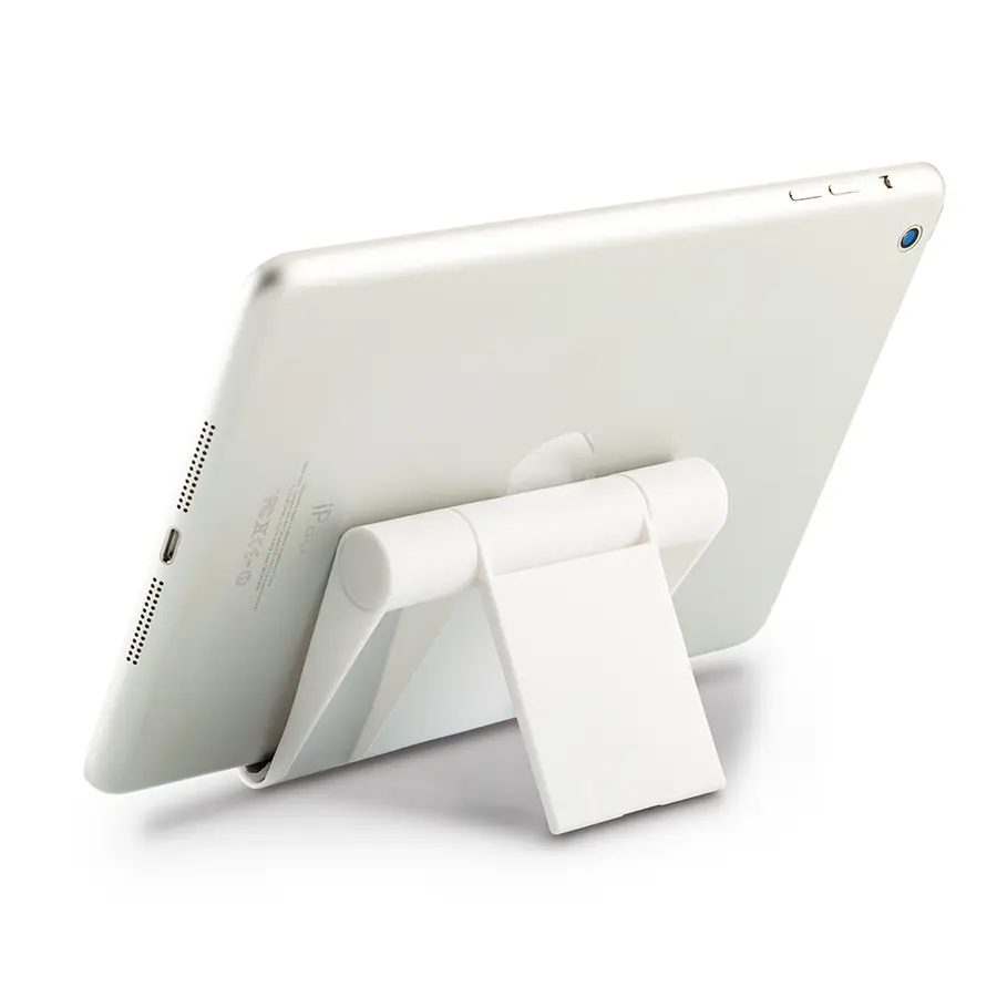 Soporte plástico para móviles y tablets. Altura ajustable.Empaque caja individual
