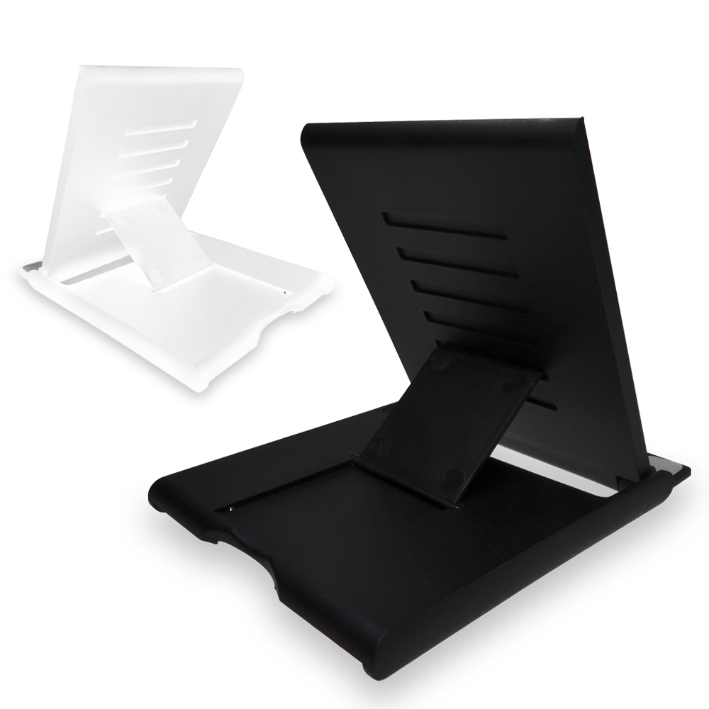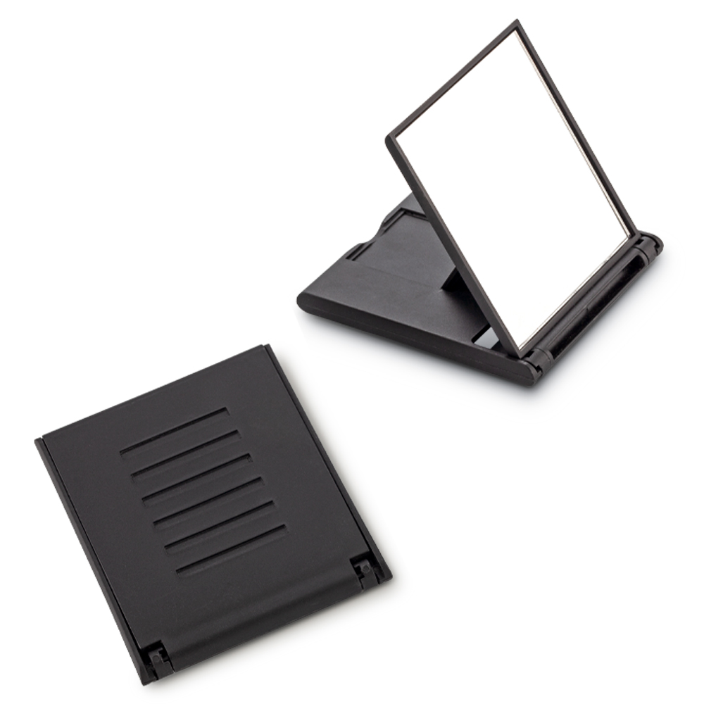 Soporte plástico con espejo para Smartphone y Tablet. 6 posiciones, diseño compacto y plegable.
