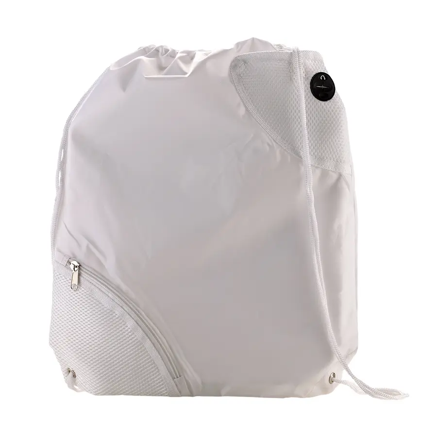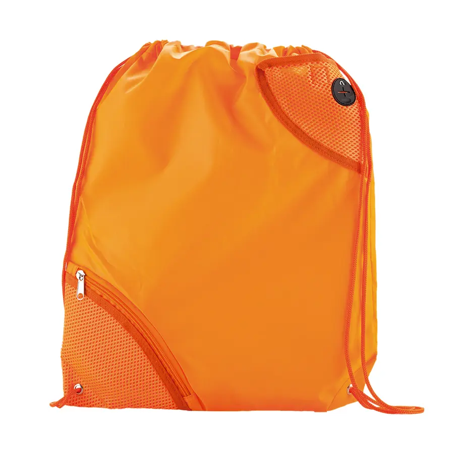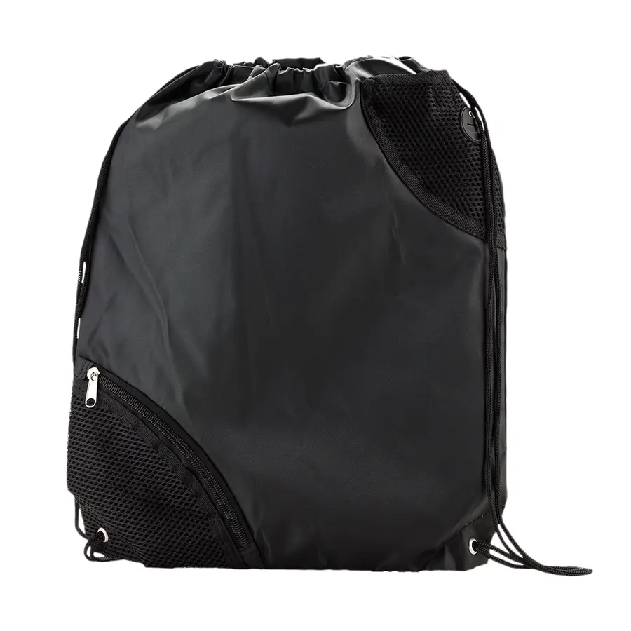 Poliéster, bolsillo exterior en malla con cremallera y bolsillo exterior con cierre en velcro, cordón para cerrar y cargar.