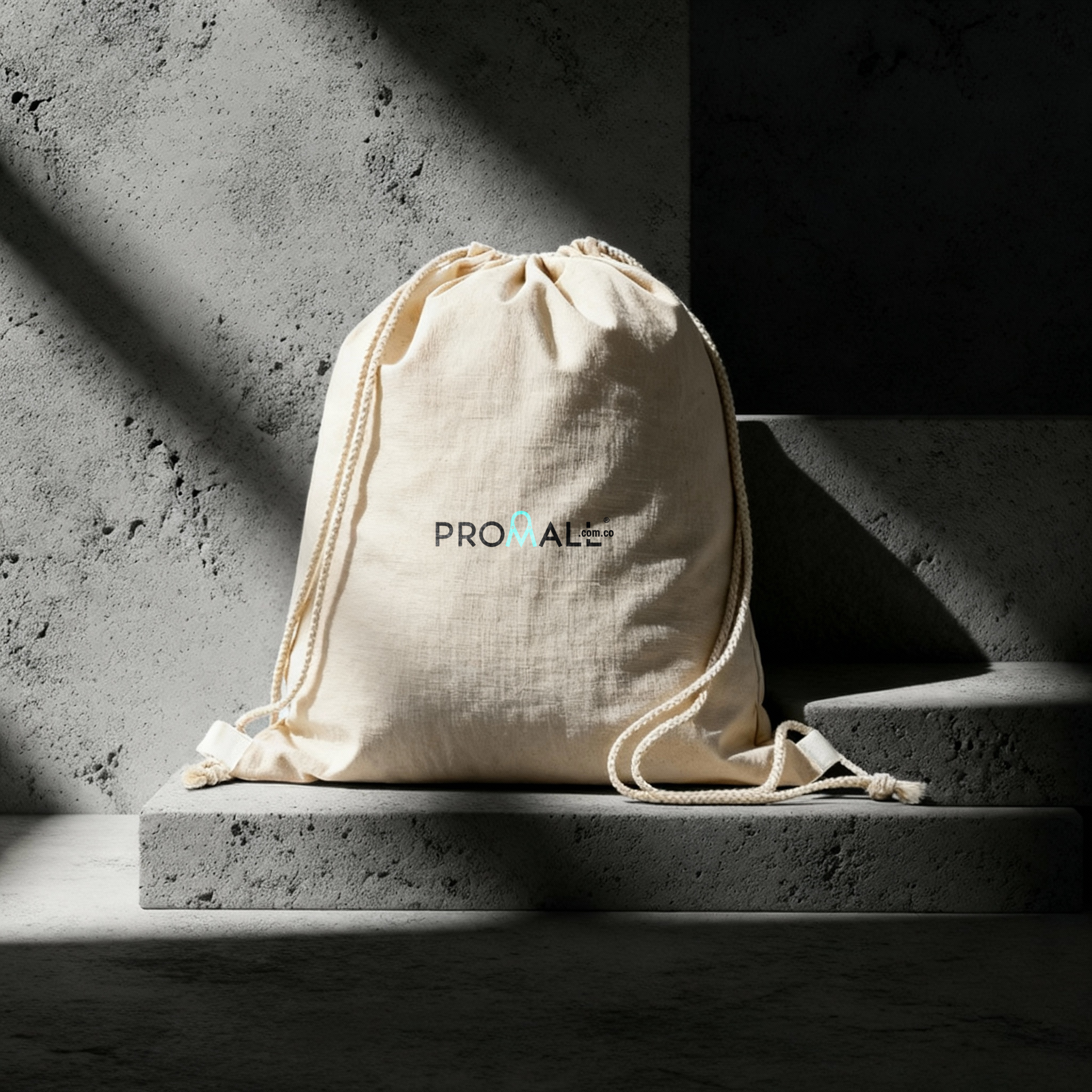 Tula morral en lona poliéster 210D, esquinas con refuerzo, cordón para cargar y cerrar Interior en aluminio.Medidas: 32 cm x 42 cm .