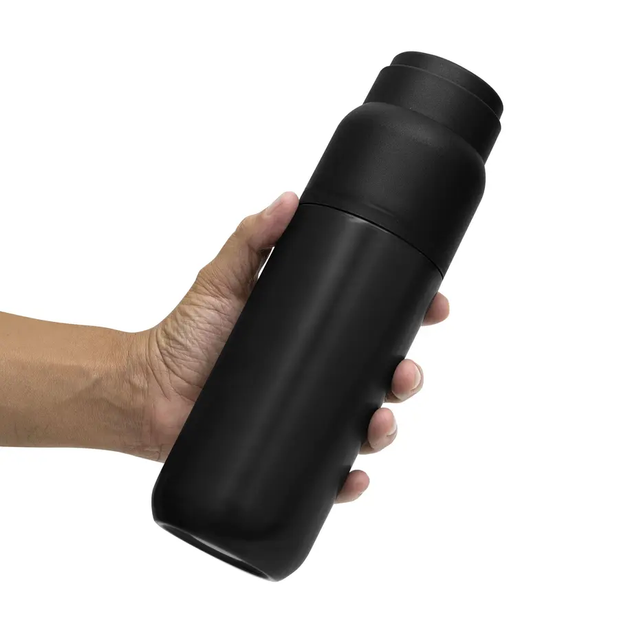 Fusiona el diseño compacto multiuso y el rendimiento prolongado.Termo con taza. Termo Doble pared sellado al vacío. Interior en acero 304 y exterior en acero 201. Tapa y taza plásticas a rosca color negro. Tapón con apertura y cierre a presión. Mantiene por más de 12 hs la temperatura de las bebidas calientes y 24 hs de las bebidas frías. Medidas: Ø 7,2 x 24 cm Capacidad: 500 ml. Materiales: Acero inoxidable y Polipropileno. Presentación: en caja de regalo kraft.