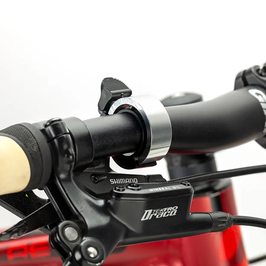 Timbre para bicicleta en plástico y metal. De fácil ajuste al manillar.