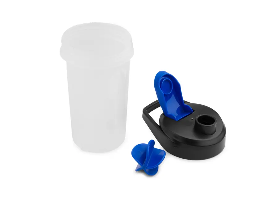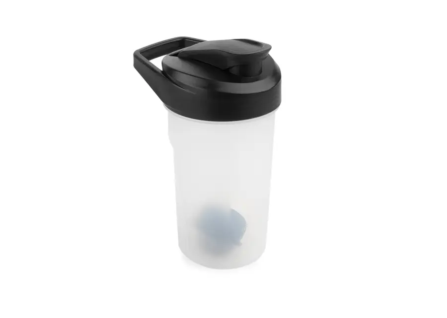 Botella deportiva con agarradera y shaker. Tapa rosca con boquilla de cierre a presión. En PP Libre de BPA, ftalatos u otras sustancias nocivas. No retiene ni transmite sabores u olores. Capacidad 400ml / 14 Oz.