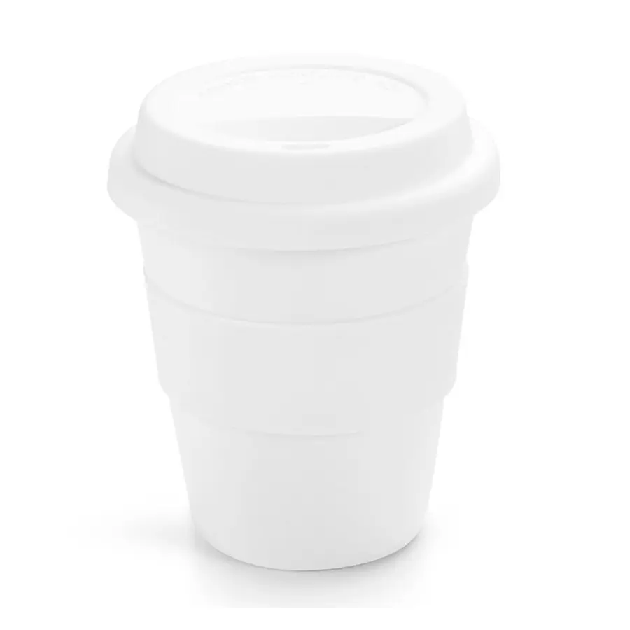 Vaso plástico con tapa y protector en silicona. Encaja en la mayoría de porta vasos de los autos. En PP Libre de BPA, ftalatos u otras sustancias nocivas. No retiene ni transmite sabores u olores. Capacidad 350 ml / 12 Oz.