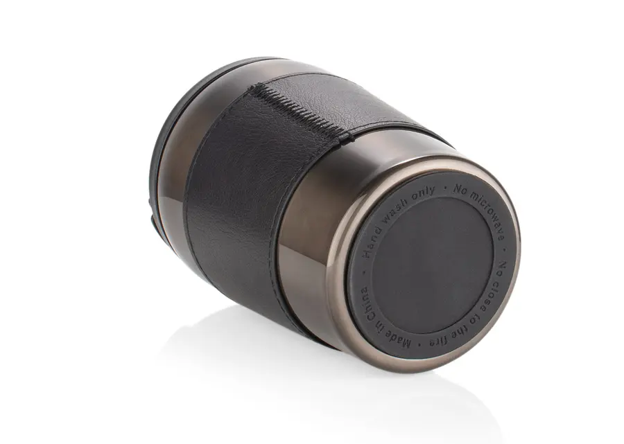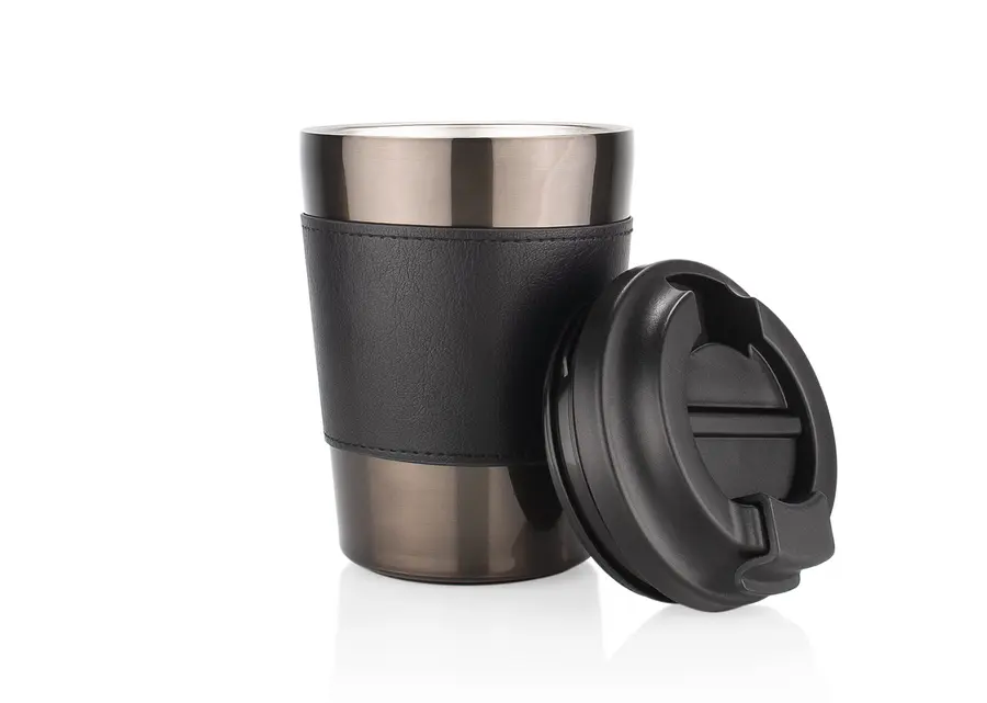 Vaso fabricado en acero inoxidable, con tapa de cierre giratorio y boquilla con seguro a presión que facilita el consumo de bebidas de forma segura. En su interior cuenta con indicador de onzas para mayor precisión. Incluye banda para mejor agarre. No apto para microondas y se recomienda lavar únicamente a mano. Capacidad: 400 ml / 13 Oz.