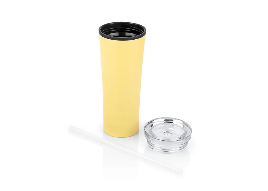 Mug plástico con tapa para pitillo, 500 ml / 17 Oz