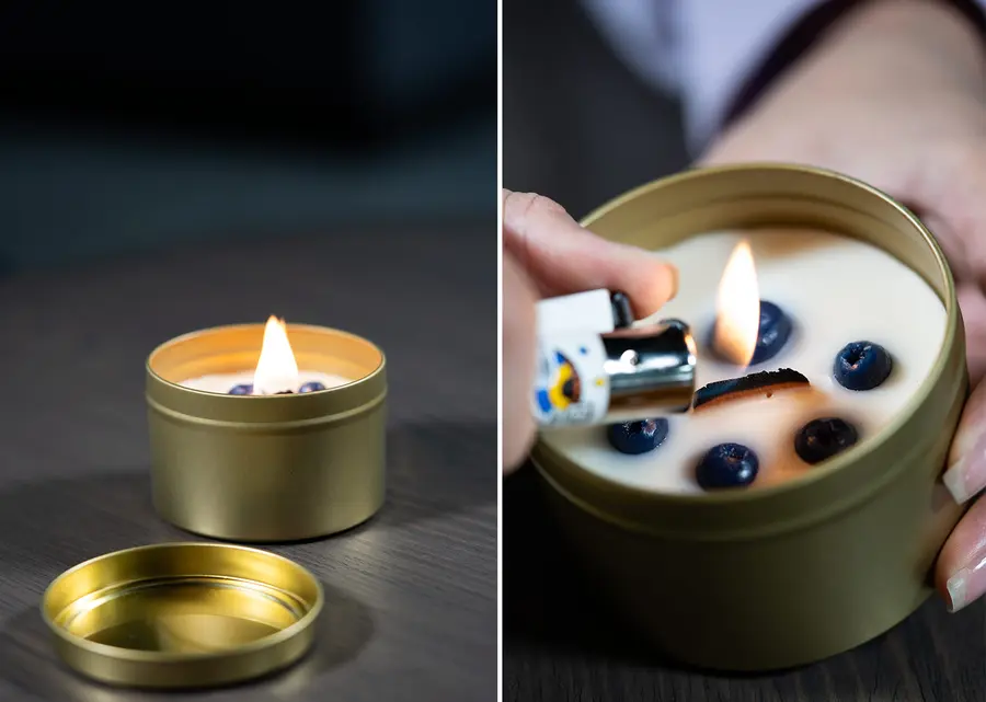 MATERIAL: Caja metálica, cera de parafina y aroma
