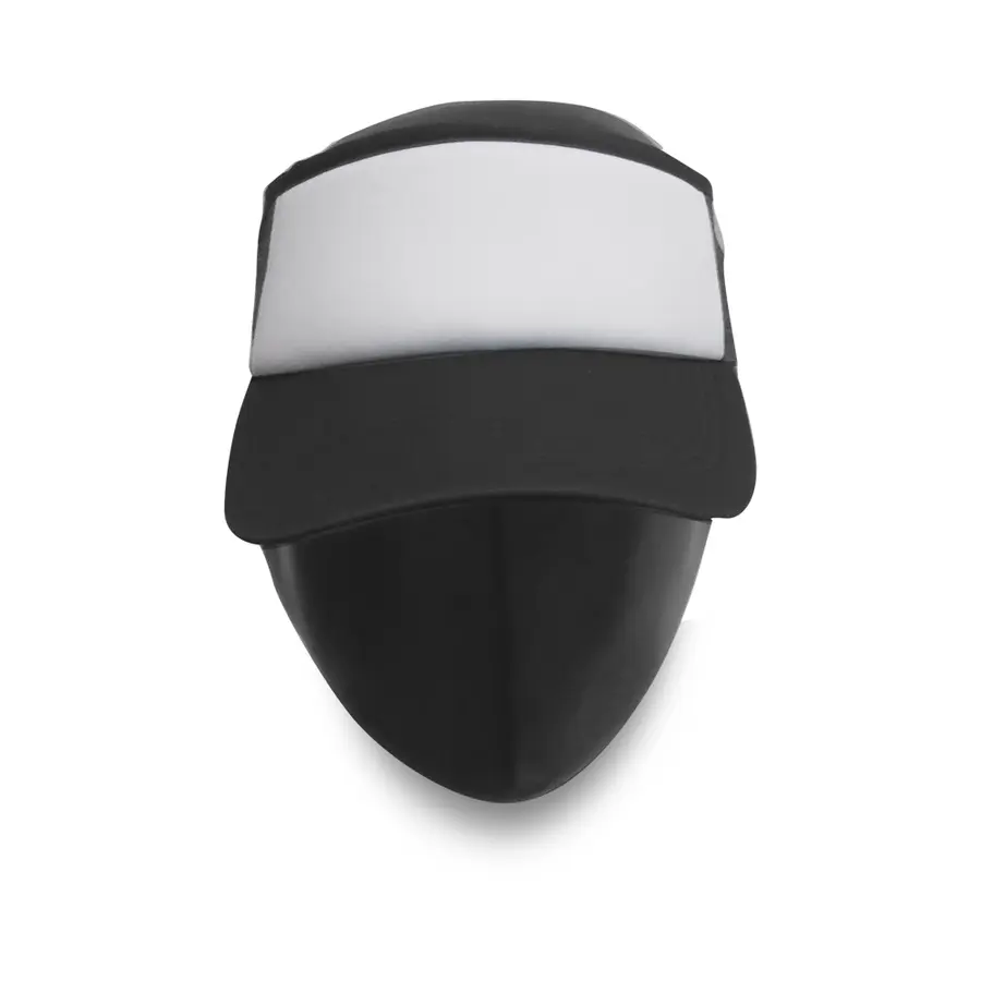 Visera con frente en poliéster espumado y panel en poliéster malla. Cierre a presión..